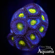 Stunning Blue Polyps with bright yellow centers. Each frag has 4-8+ polyps
