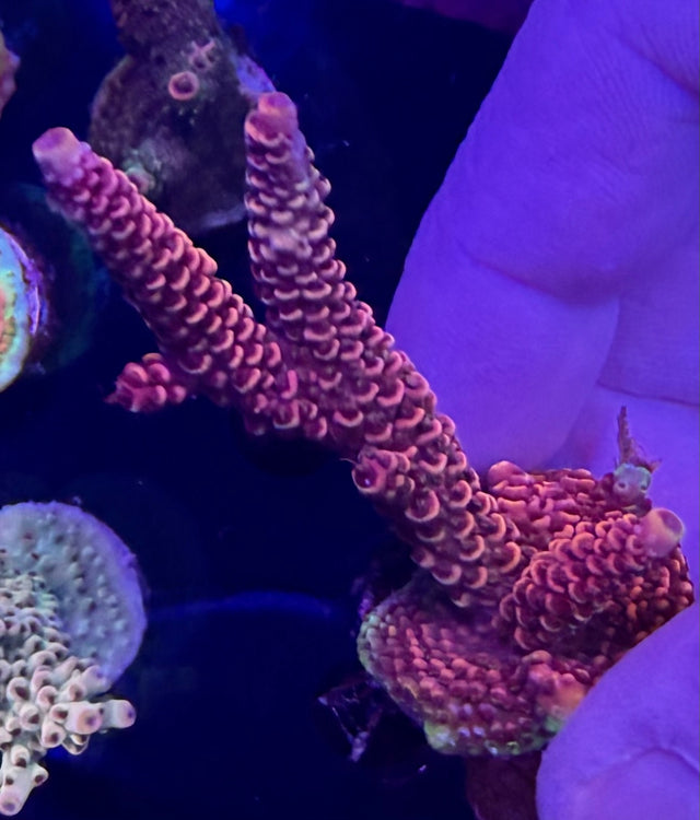 The NWA Miami Heat Millie features vibrant pink and orange coloration that intensifies under quality lighting. This acropora thrives in high-flow environments with strong, direct lighting—ideal for established reef systems. Perfect for intermediate to advanced aquarists seeking a show-stopping accent piece that combines aesthetic appeal with dynamic growth potential.
