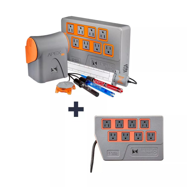 Included with the Apex Pro and standard Apex Controller Systems is the Energy Bar 832-- the power control hub to rule them all. They are the only UL-certified power bars approved for use in aquarium applications. Each of the eight individual outlets has independent power consumption monitoring with its own LED indicator status display, and the power supply feeds an additional three built-in 1LINK ports as well as two 24VDC accessory ports. Now you can connect additional Neptune accessories like the DOS and WAV pump directly to the Energy Bar 832, saving room and eliminating messy cords around your aquarium.