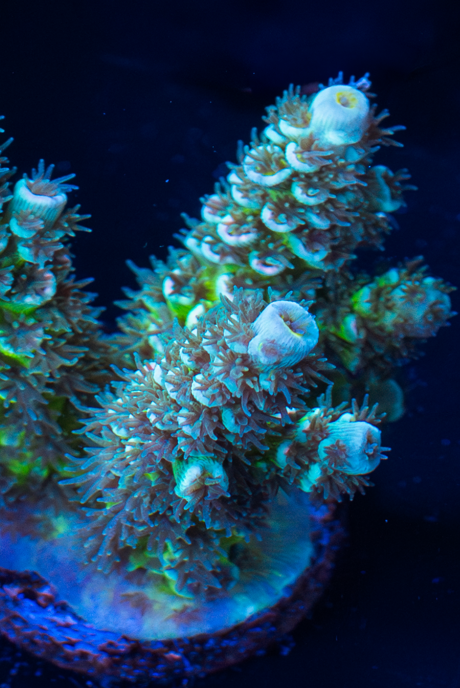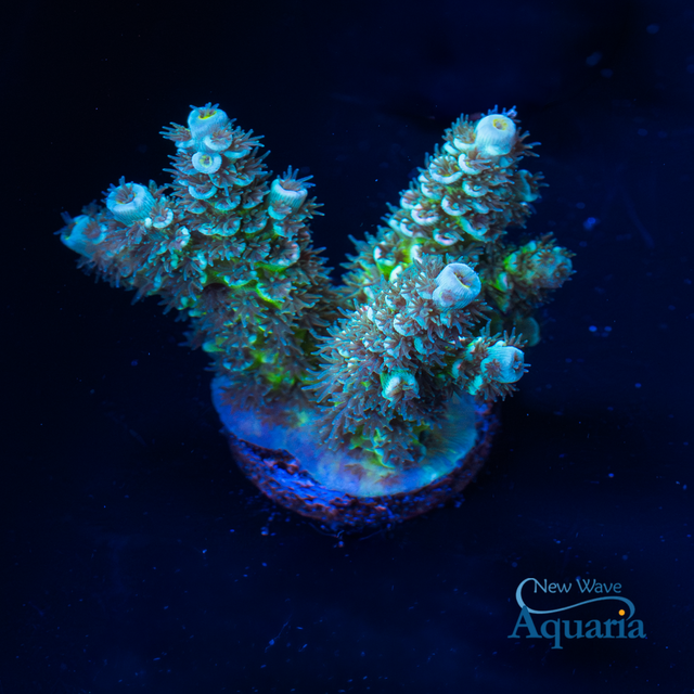 You have been INVADED!! This Tenuis showcases a stunning spectrum of neon green, vibrant pink, aqua blue, and soft purple hues that create an eye-catching focal point in any reef setup. Homegrown and easy to maintain, this coral thrives under high light and strong water flow.