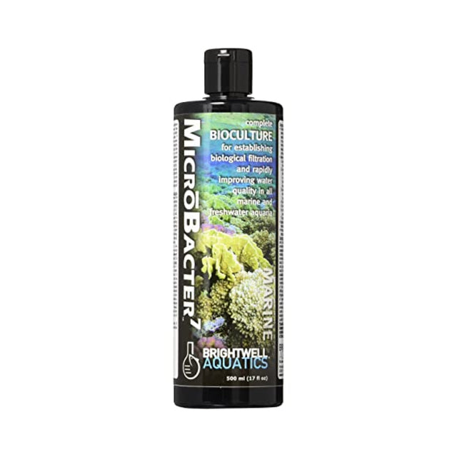 Brightwell Aquatics MicrōBacter7 is a selective complex of extremely effective microbes and enzymes that rapidly reduces the concentrations of organic nitrogen, ammonia, nitrite, nitrate, phosphate, and organic carbon in all marine and freshwater ecosystems, leading to greatly improved water quality; better water quality typically leads to healthier aquarium inhabitants.